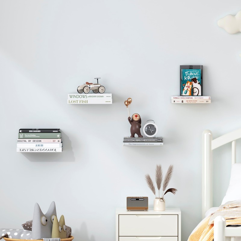 - 【Transform Books into Wall-Mounted Art】: The ultra-slim profile disappears behind a single book, creating a morden invisible shelf that makes your books look like they are floating. Perfect for book lovers and home decor enthusiasts.