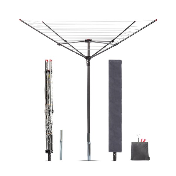 - FREE GIFTS - Each Package includes metal ground spike, protective cover, peg bag and 36pcs clothes pegs as free gifts for easier to Install the umbrella drying rack