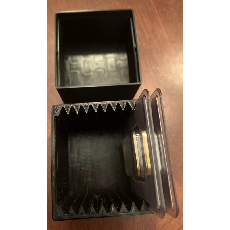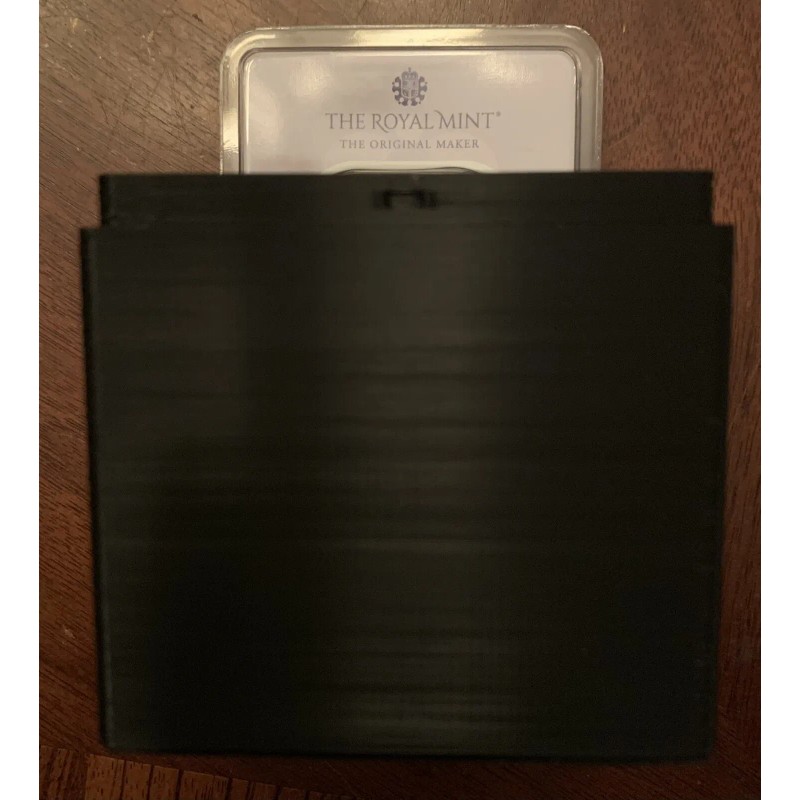 3DP Black Storage Box Holds 10x Royal Mint Precious Metal Assay Cards Custom designed 3D printed box. Printed in PLA, 3D printed products are not perfect clones, you may notice layer lines or imperfections in the surface finish, or some stringing, these are quite normal but overall they make for very nice sleek coin protective cases. These are printed to demand, so please allow for some processing time before your order is ready to ship. PLA heat resistance is low and will begin to warp at 60C or 140F. Bars/coins not included.