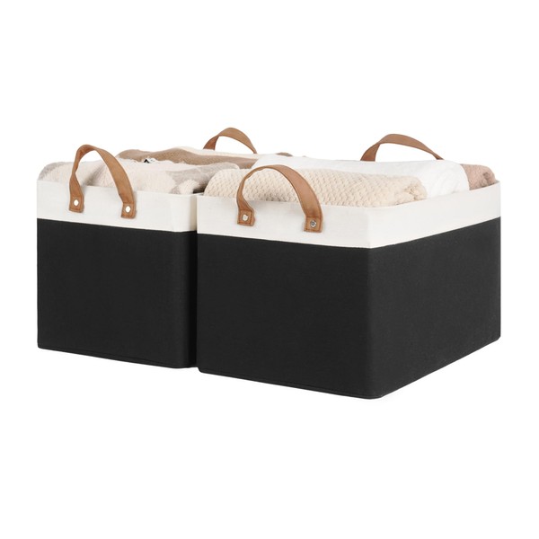 StorageWorks Storage Bins, Shelves Baskets for Organizing, Large Fabric Closet Organizers with Handles, Metal Frame, Black and White, 2-Pack