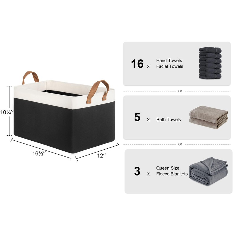 - Store Plenty: These large, durable storage baskets are perfect for storing a variety of items, including clothing, towels, blankets, pet supplies, books, magazines, albums, DVDs, office and craft supplies, etc.