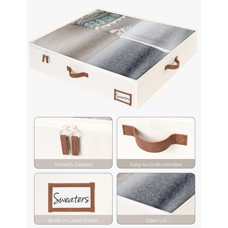 - Underbed storage organizers feature a big transparent lid and a label holder.
