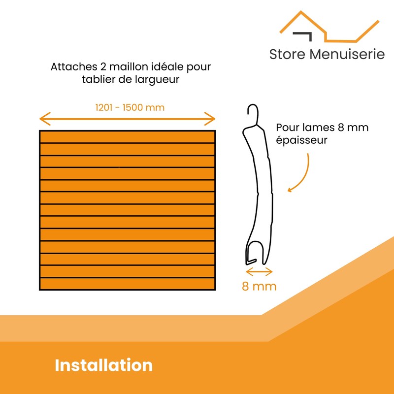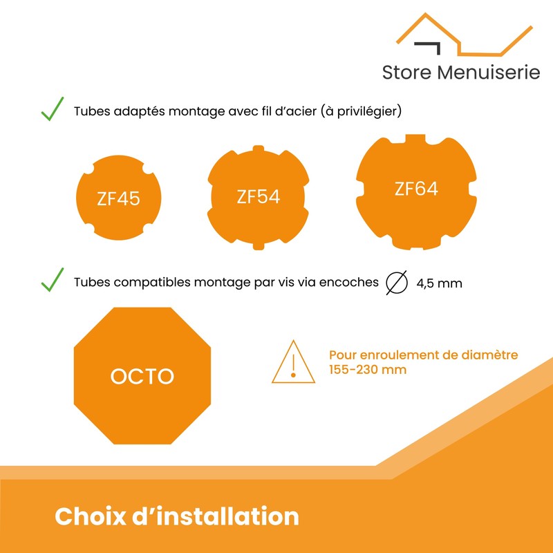 With the roller shutter apron fasteners (or suspension springs) you no longer need to screw on your ZF tube, you can simply clip (or clip) your parts onto your winding axle.