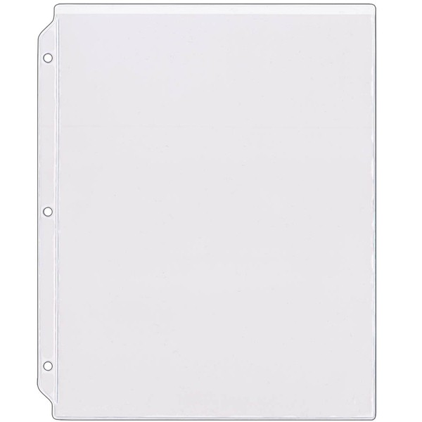 Stop ruining your important documents and prints punching them full of holes. Protect and organize your paperwork with StoreSMART's Plastic Sheet Protectors, instead! Each crystal clear 6-gauge vinyl pocket includes standardized 3-ring binder holes on the left long side for ease of storage, while the top short side opening with a 1/4" lip makes loading papers a breeze. The reinforced edges and holes mean you'll never have to worry about the safety of your important business files and collections. Looking for larger binder pages? Try our 11" x 17" Plastic Sheet Protectors (RMPT860). Product Features: Crafted of crystal clear 6-gauge vinyl. Includes holes on the long left side for use with three-ring binders. Open along the top short side with a 1/4" lip. All edges and holes are reinforced. Inside capacity: 8 1/2" x 11" - Outside dimensions: 9 1/4" 11 1/2". Made in USA. Suggestions for Use: Businesses: Use our sheet protectors to store presentation graphs and other printed materials. Artists and actors: Do you use a binder during work calls and auditions? Make sure every document, drawing, and photograph in your portfolio is secure with our sheet protectors. Photographers: Protect large photographs. Collectors: Organize your print collection by using a binder for storage, instead of letting your prints gather dust in your closet.