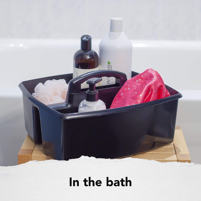 Storex 2-Compartment Large Caddy – Multipurpose Classroom Organizer with Handle, Black, 1-Pack (00973A06C)