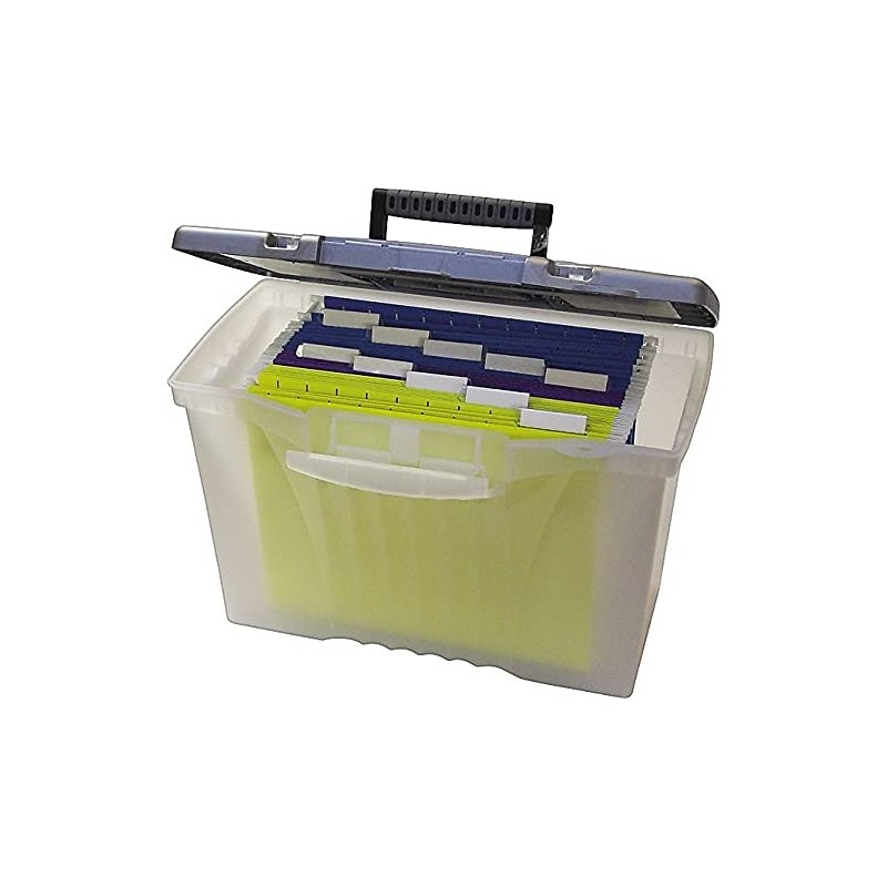 Storex 61511U01C Portable File Storage Box w/Organizer Lid Letter/Legal Clear