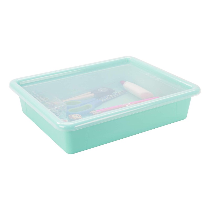 Storex Letter Size Flat Storage Tray – Organizer Bin with Non-Snap Lid for Classroom, Office and Home, Teal, 5-Pack (62541A05C)