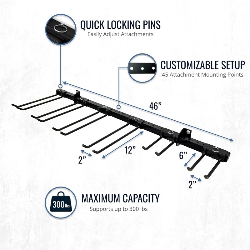 - INDUSTRIAL GRADE: Solid steel and aluminum support up to 300 lbs total, up to 50 lbs per tool storage attachment.