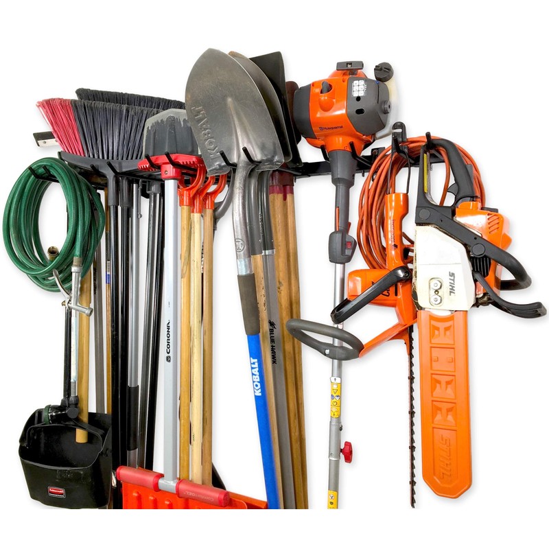- MAXIMUM TOOL CAPACITY: Holds multiple yard tools, shovels, rakes, ladders, brooms, garden hoses, extension cords, and more!