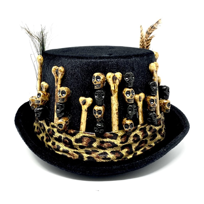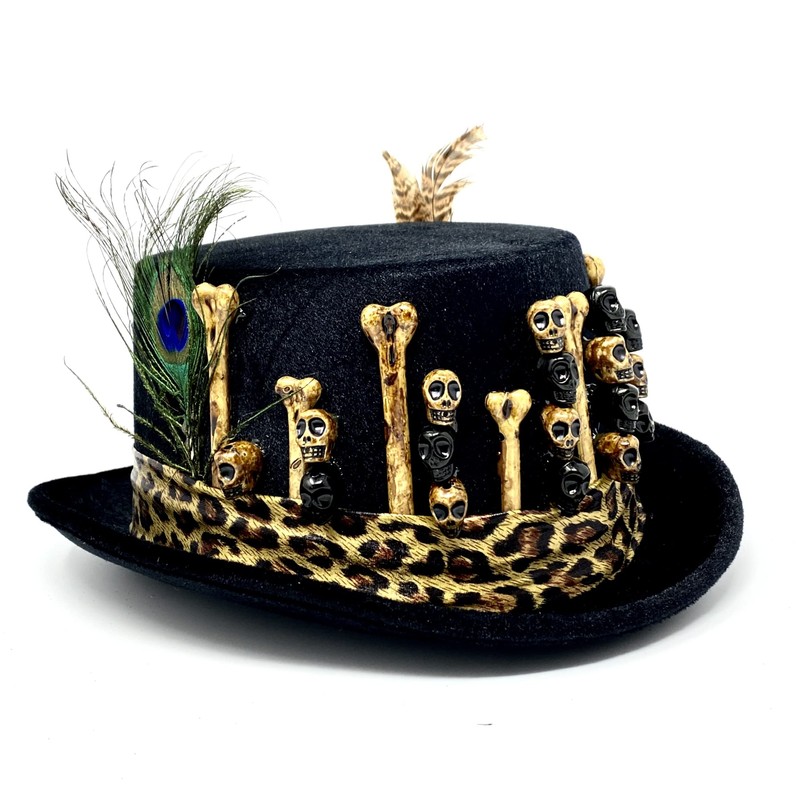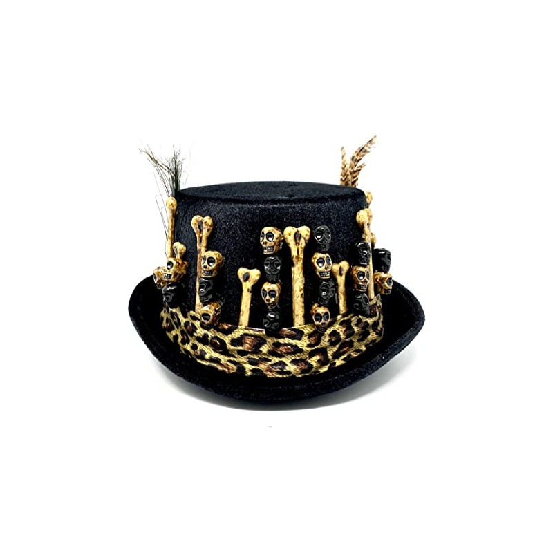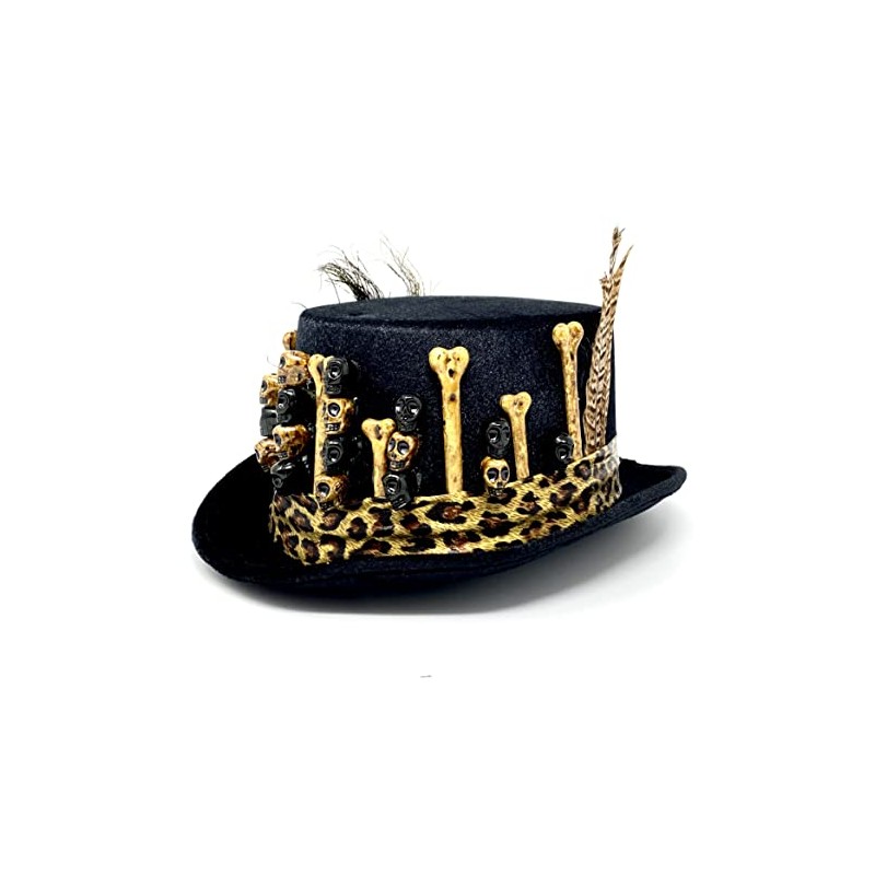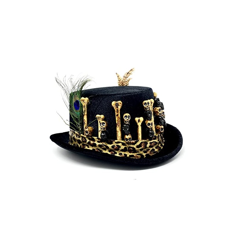 STORM BUY ] Steampunk Top Hat Mad Scientist Time Traveler Feather Halloween Costume Cosplay Party with Goggles (Black Skull.3)