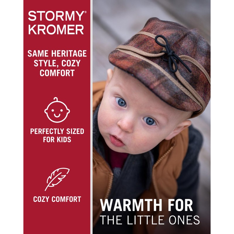 Stormy Kromer The Lil' Kromer Cap, Wool Blend Winter Hat for Kids, Flannel Lined Baby Essentials Cap with Pulldown Earband for Cold Weather Protection, Ottawa, 5 1/8