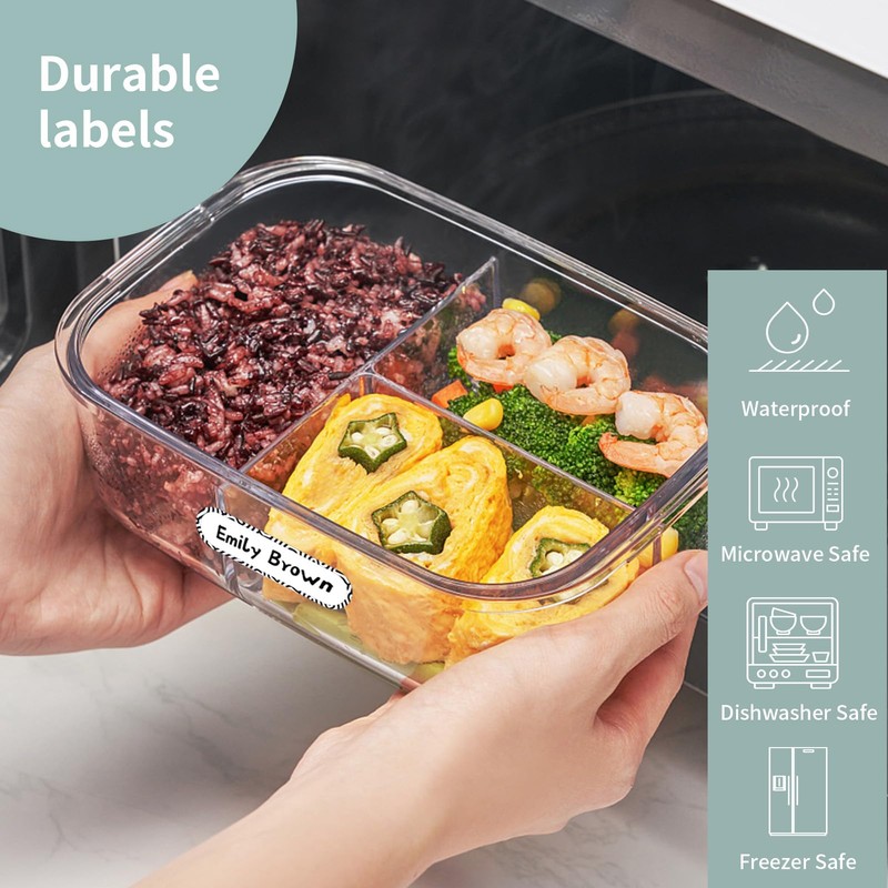 - Easy To Use Name Tag Stickers - Just write on the name labels with a permanent marker, let it dry,cover the clear plastic then peel and stick.They are waterproof labels, dishwasher-safe labels, and freezer safe labels with no-smears