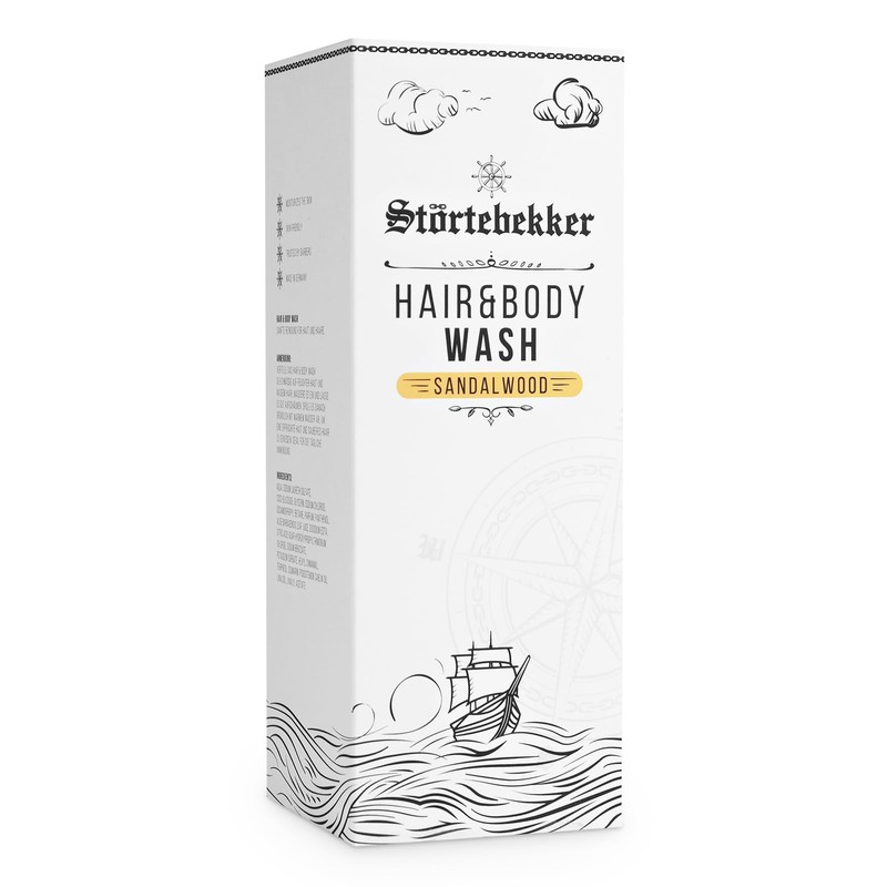 Störtebekker® Premium Hair & Body Wash Sandalwood - 2-in-1 Shampoo and Shower Gel Men - Moisturising Shampoo with Aloe Vera - Shower Gel and Shampoo Men - 500 ml - Made from Natural Ingredients