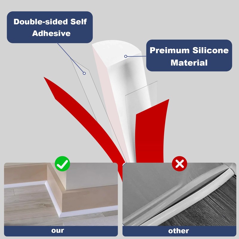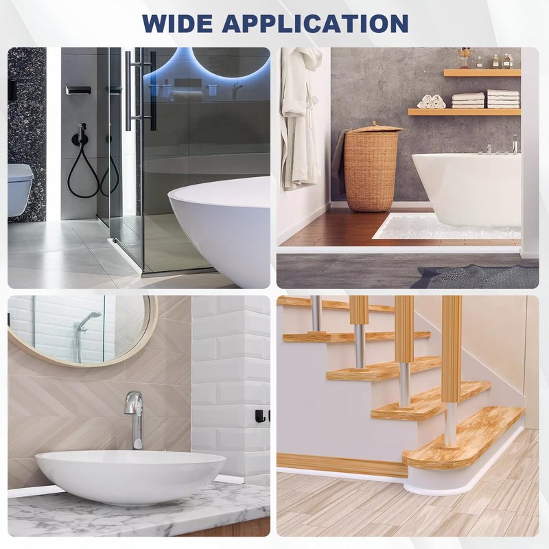 - High Utility: Peel and stick quarter round trim is easily trimmed to the desired size with scissors. Bathtub floor trim has double-sided adhesive tape adheres to tiles, wood, and other smooth surfaces, effectively sealing gaps and preventing water leaks