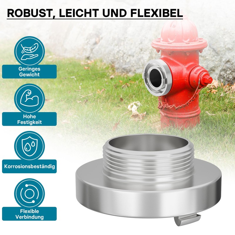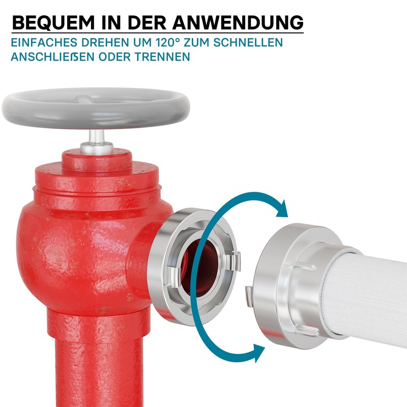 The hose storz coupling adapter with male thread is employed for connecting hoses with a large diameter. This storz coupling allows a fast connection or disconnection by means of a 120° rotation. The coupling is used in the industries, fire brigades, refineries, agriculture, construction industry, navigation, military and civil protection.