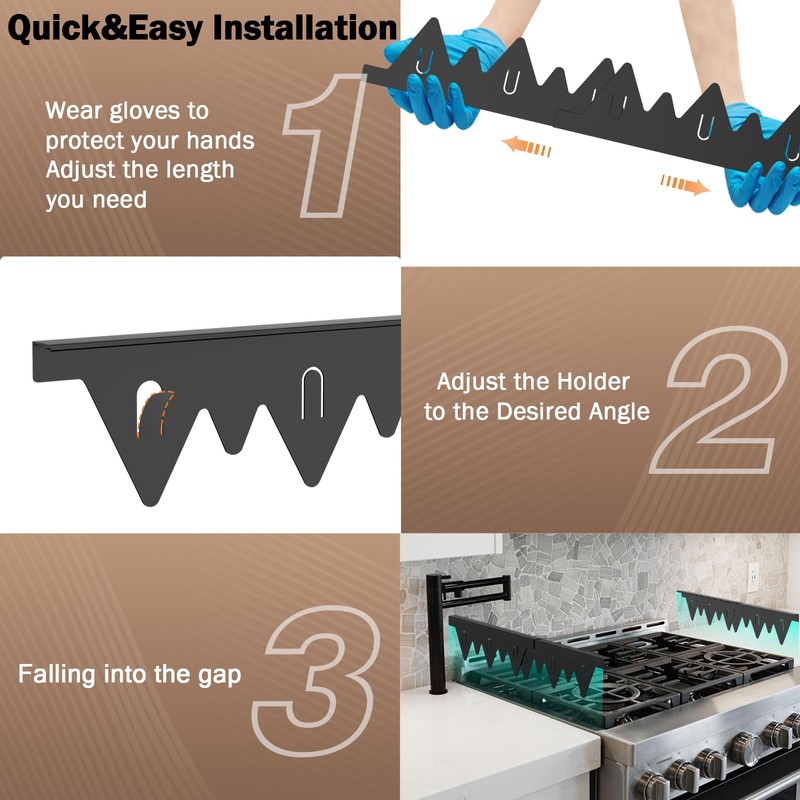 - 【Retractable & Adjustable Fit】Easily expands from 13.8" to 27.5" with a 0.79" width, allowing these stove gap covers to fill various gaps between your stove top and counter.