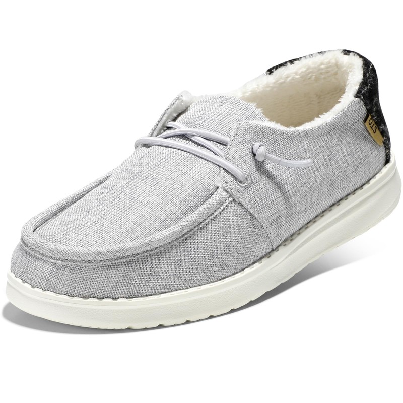 STQ Slip on Casual Shoes for Women Warm Fur Line Sneakers for Winter Cold Weather Light Grey US 7.5