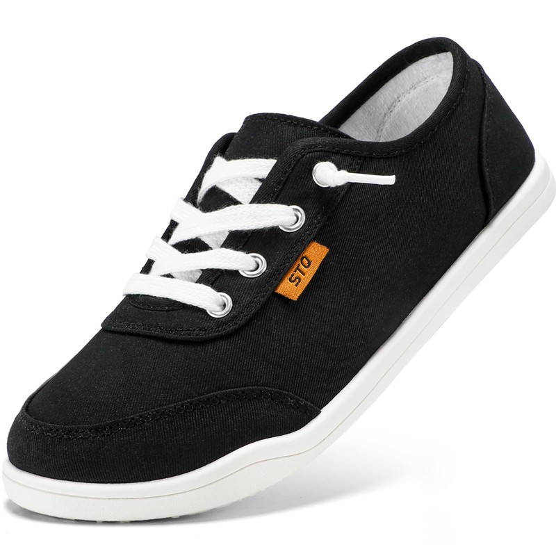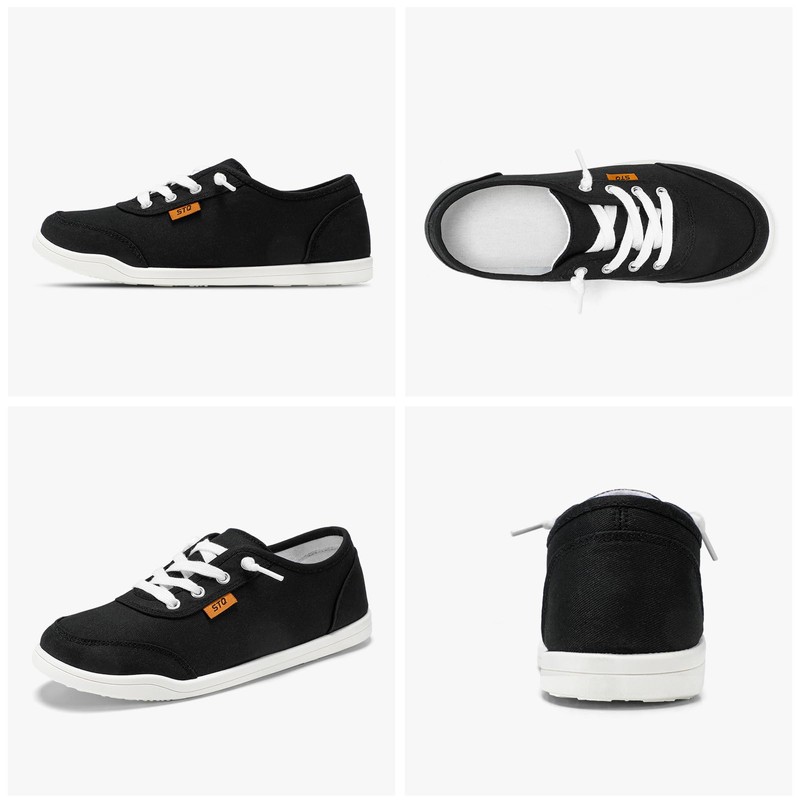 STQ Slip On Orthopedic Shoes Women Low Top Classic Fashion Canvas Sneakers with Arch Support Casual Shoes Black White Size 6