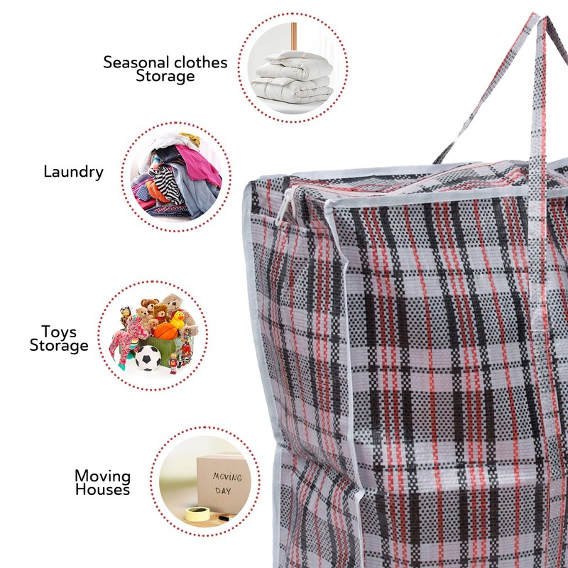 - HEAVY-DUTY & DURABLE: The bags are reinforced with extra stitching on all carrying handles that wrap around the bag for maximum strength and security. The bags are designed for heavier loading and can safely hold up more weight. These bags are made from our premium polypropylene woven material that is easy to clean with wipes, easy to maintain, and Weather-resistant. They are an excellent alternative for moving houses or as an extra-large grocery shopping bag.