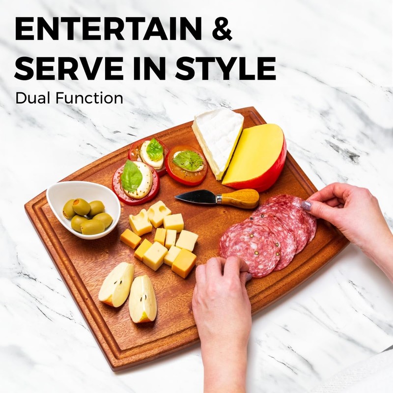 • 🍽️ 𝐕𝐞𝐫𝐬?𝐭𝐢𝐥𝐞 𝐔𝐬𝐞: Not just for chopping and slicing! Flip it over to serve or entertain guests with its stylish and durable design. Finished with mineral oil for a safe use for your family in the kitchen.
