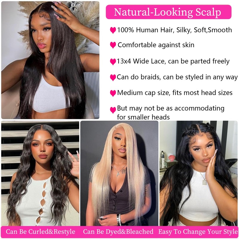 - Glueless wigs human hair pre plucked, featuring meticulous hand-tied workmanship, with tiny, bleachable knots and natural baby hair, 13x4 WIDE LACE, NOT 13x4 Narrow Lace, more space to do free part or braids.