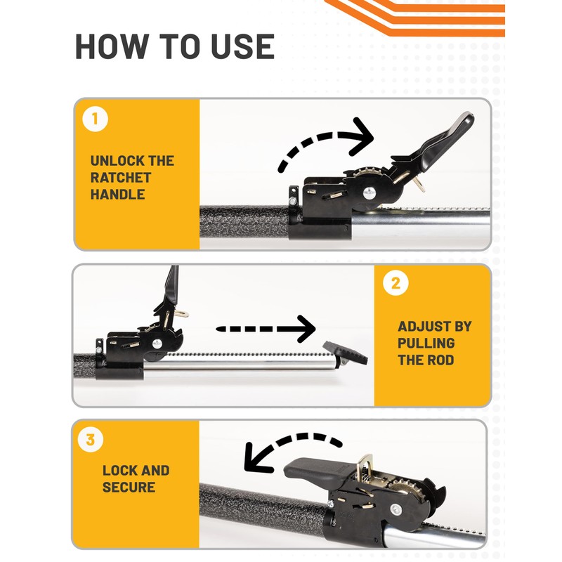 Strapinno - Ratcheting Cargo Bar 44"-74", Non-Slip Truck Bed Divider, Easy Setup, Strong 1.25" Tube, Adjustable Stabilizer for Pickup Trucks