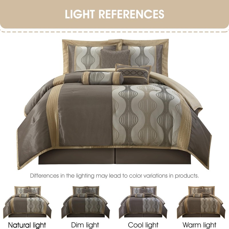 Stratford Park 7 Piece Grey Gold Comforter Set, Queen Size Jacquard Bedding S...
