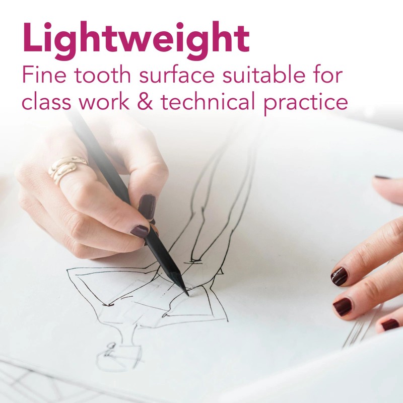 - General Purpose & Lightweight - Tackle sketch projects like figure drawing, illustration, and character design without worry of unsightly tears or creases; paper has a fine texture to grip pigment from pencil and charcoal