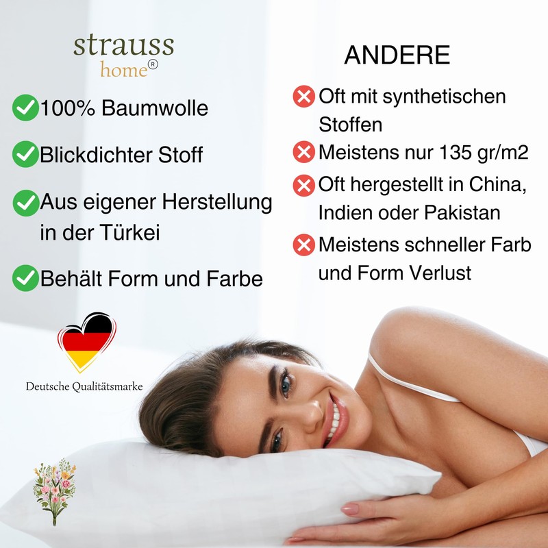 - Strauss Home Quality: Our fitted sheets represent the highest standards in quality, feel and aesthetics. Available in sizes 180 x 200 cm - 200 x 200 cm and suitable for mattresses with a base height of up to 27 cm.