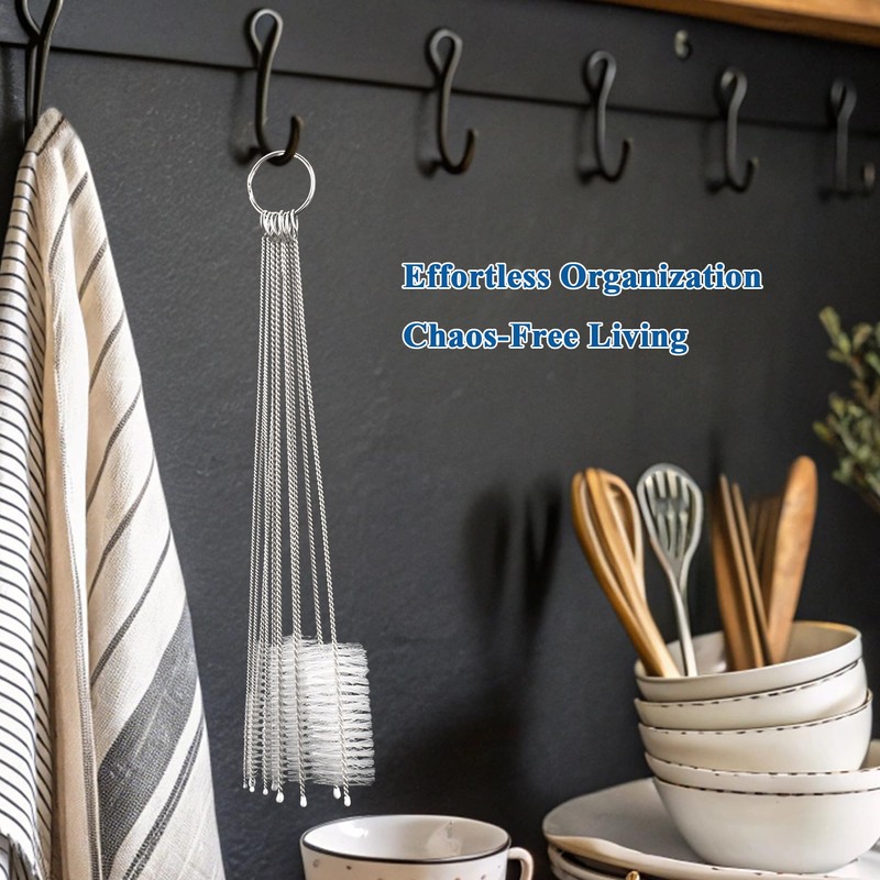 - Metal ring hanging feature allows organized storage, space-saving solution keeps brushes accessible and dry, convenient organization system helps reduce drawer clutter and keeps items neatly arranged