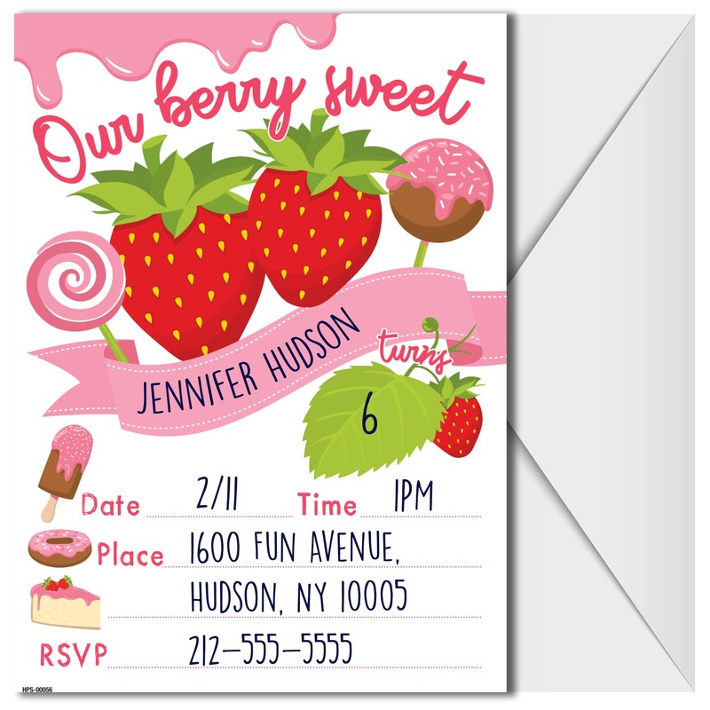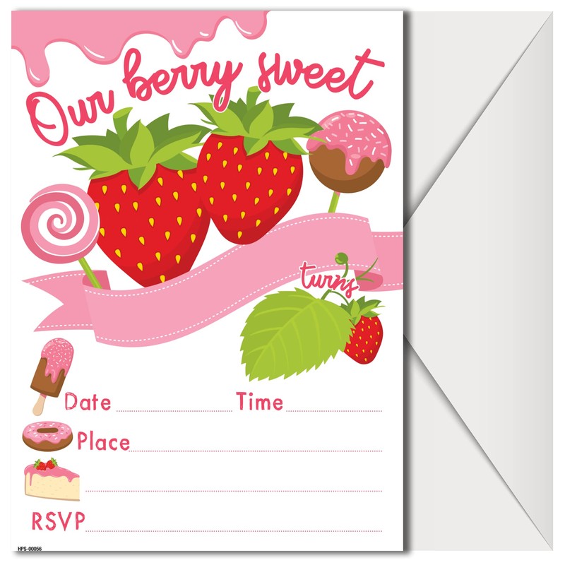 Strawberry Birthday Party Invitations with Envelopes - (Pack of 20) - Strawberry Themed Party Invitations for Girls, Children, Boys, Toddlers, and More. Strawberry Birthday Party Supplies. Fill in Style
