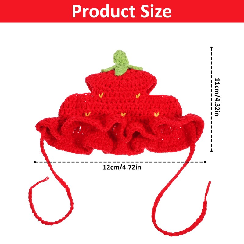 - Product packaging: This product contains a strawberry hat with a size of 12 x 11cm/4.72 x 4.32 inches, which is fashionable and cute