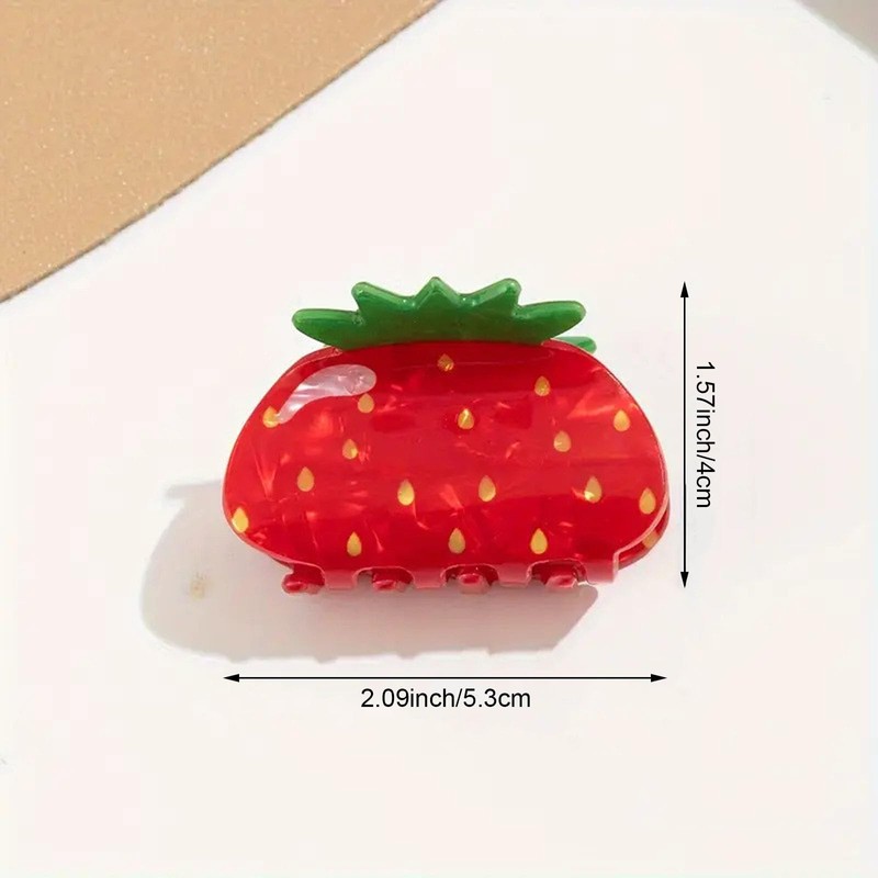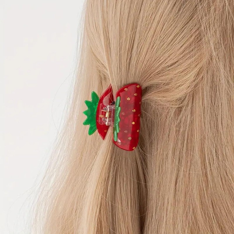 Strawberry Hair Clips for Women, Red and Green Fruit Design, Decorative Claw Style Hair Accessories, 3 Pack