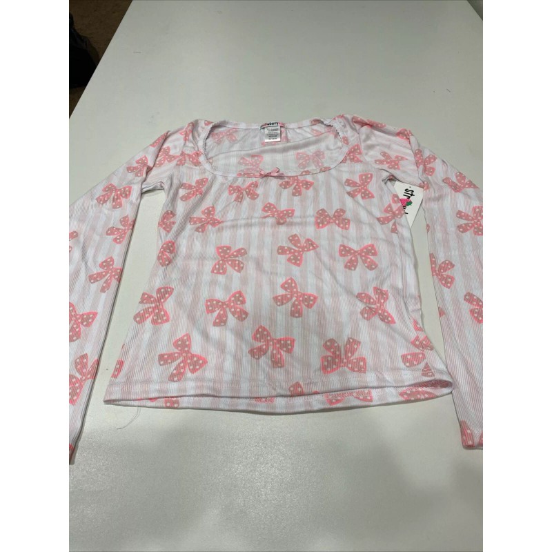 Strawberry Kiss Square Neck Pink Bow Pj Top L