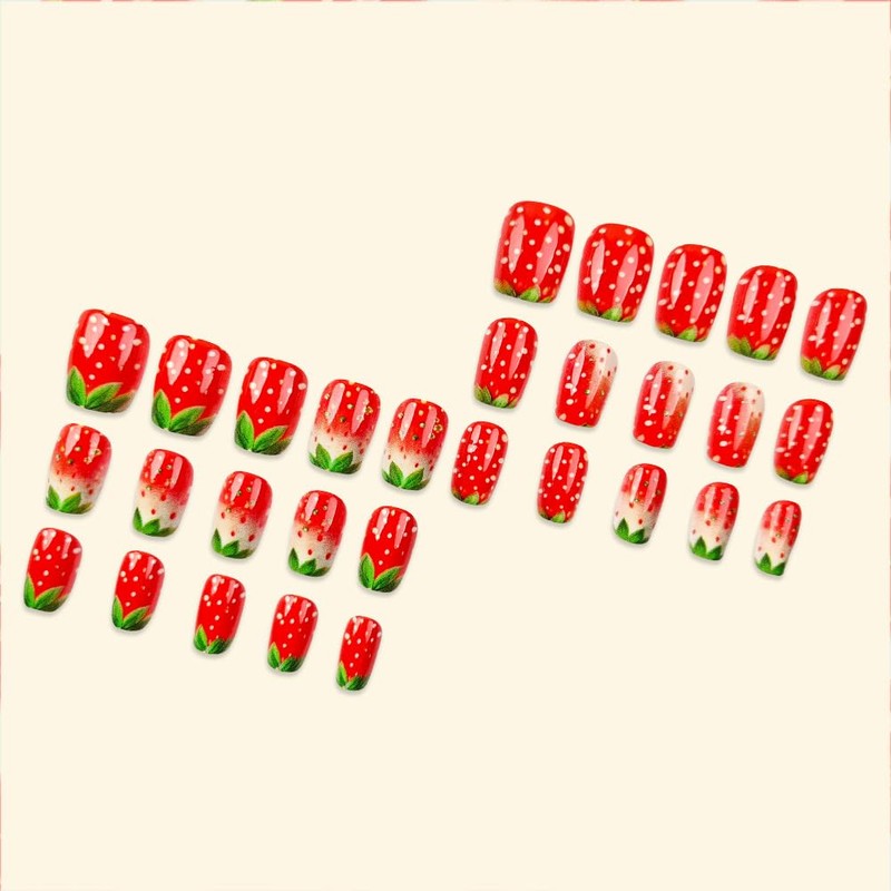 - Great for Everyday Wear:Beautiful Strawberry design artificial nails for women are designed for daily wear, providing a seamless blend with your routine while adding a touch of elegance to your nails. The full cover fake nails design ensures a stylish and festive look