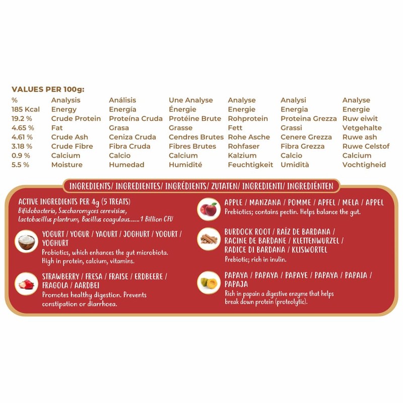 - PROMOTES HEALTHY GUT MICROBIOME: Infused with prebiotics and probiotics to support digestive wellness, helping maintain a balanced gut flora and boosting overall health with every treat.