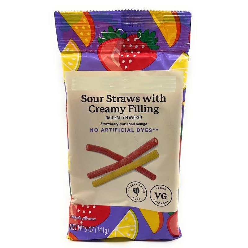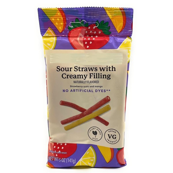 Strawberry – Yuzu & Mango Sour Straws with Creamy Fillings, Naturally Flavored, 5oz/141g – Pack of 1