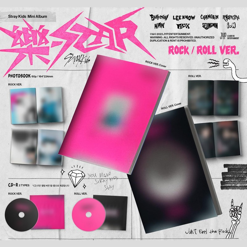 Stray Kids - Rock Star (Strandard - Roll Ver.) Photobook + CD-R + Photocard + Panorama Mini Poster + Unit Photocard + Sticker + 2 Pin Badges + 5 Extra Photocards