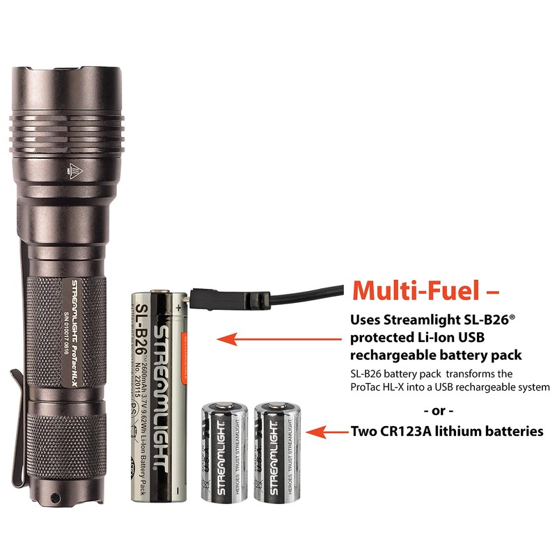 Streamlight 88065 ProTac HL-X 1000-Lumen Multi-Fuel Professional Tactical Flashlight, Includes CR123A Lithium Batteries and Holster, Black