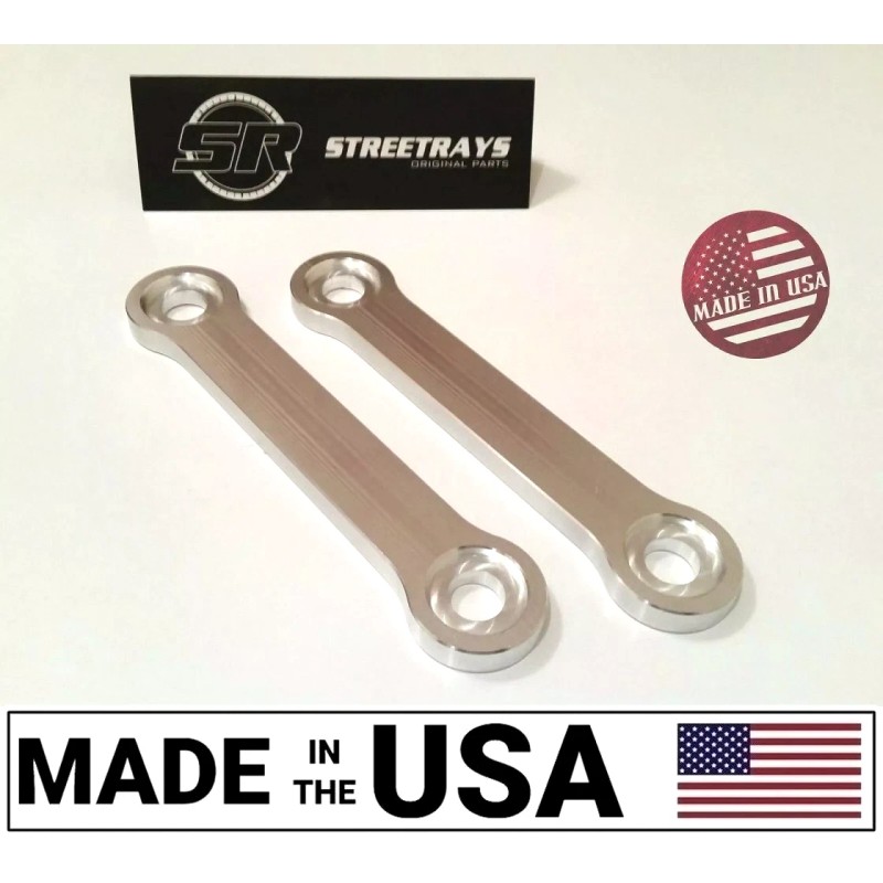 StreetRays lowering link is CAD designed and each unit is CNC machined from USA sourced 6061 T6 Aluminum.