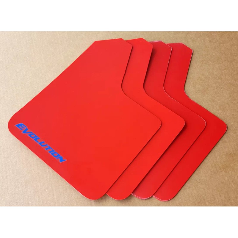 StreetRays 08-15 Mitsubishi EVO Evolution X STARTER Mud Flaps Set RED w/ Vinyl Logo Size: Slightly over 12" Wide x 15" Tall Color: RED w/ EVO Vinyl Decal NOTE: By default the vinyl decal will be White --- Upon Request: blue /red /white /black is available. Material: UV Resistant Poly-blend Plastic DOES NOT include hardware (Universal) Like everything else StreetRays, our mud flaps are made in-house in Central Texas (Austin) with CNC cutter and forming. Just like our CNC BIllet Parts, these mud flaps all precision cut to specific design and each and everyone one them are inspected to ensure consistent end product for our user is perfect. Our mud flaps are available in 2 different material. This is our entry level mud flaps set, which is priced at very competitive price point so that everyone can have their own DIY mud flaps. All you need is a set of fender liner clips (U-nuts & screws) to mount these. Although these poly-blend sheet is thinner than our Urethane ones, they are 100% UV resistant, anti-warp and most importantly, they will sustain all the beating any environment will give them! every single time! StreetRays will be offering these mud flaps in multiple styles so that you can personalize these beautiful mud flaps and cut them and make them your own. These specific ones are offered as universal set, which means they don't come with any hardware. Application specific ones will be available separately. |