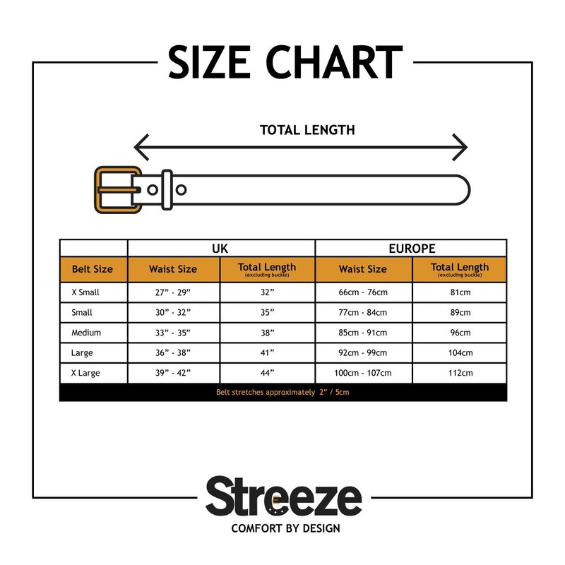 - STREEZE 12 MONTH GUARANTEE: As our belts are made with stronger fabric than other stretch belts, we can offer you a 12 month guarantee. You can buy your quality Streeze stretch belt in complete confidence.