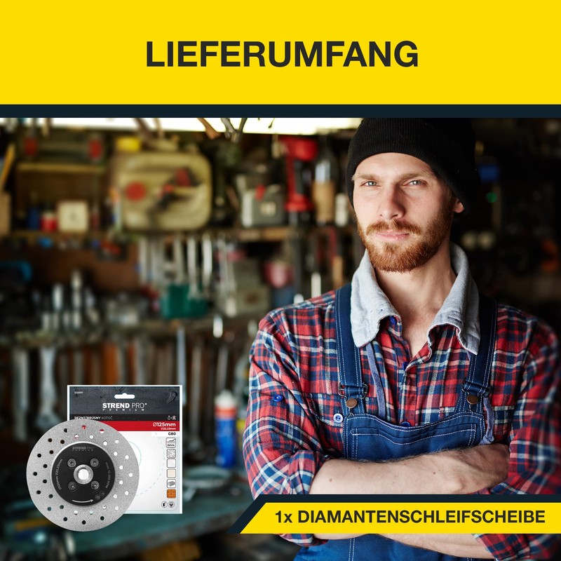 STREND PRO Diamond Disc 125 mm for Tiles/Ceramic/Glass/Granite/Mramor - Use Both Sides - Premium Flex Diamond Cutting Disc for Angle Grinder M14 - Tile Grinding, Separating, Milling