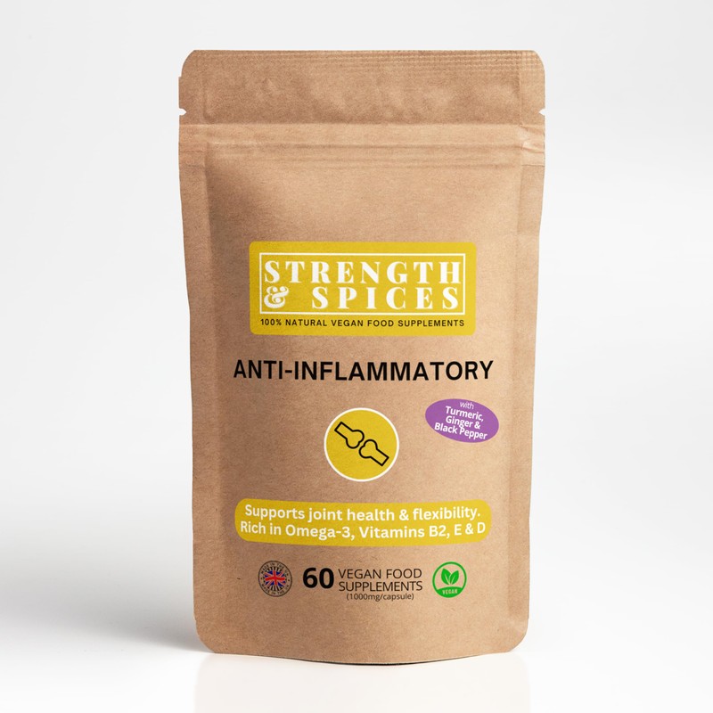 STRENGTH & SPICES100% Natural Vegan Food Supplements Strength & Spices Anti-inflammatory, Muscle and Joint Care Supplements for Mobility and Recovery, Turmeric Capsules with 28 Powerful Ingredients, Vegan and All-Natural, 1000mg, 60 Capsules, Refill