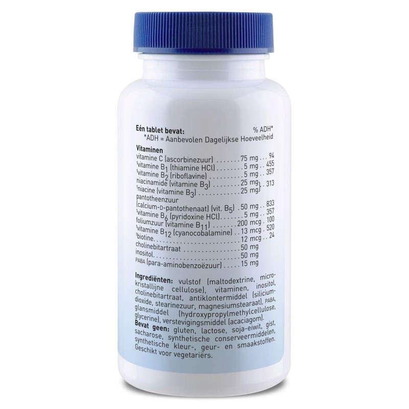 • Orthica Stress B-Complex delivers 75 mg vitamin C per tablet, 5 mg vitamin B1, vitamin B2 and vitamin B6, 50 mg vitamin B3, vitamin B5, choline and inositol, 15 mg PABA, 200 mcg folic acid, 13 mcg Vitmain B12 and 12 mcg biotin