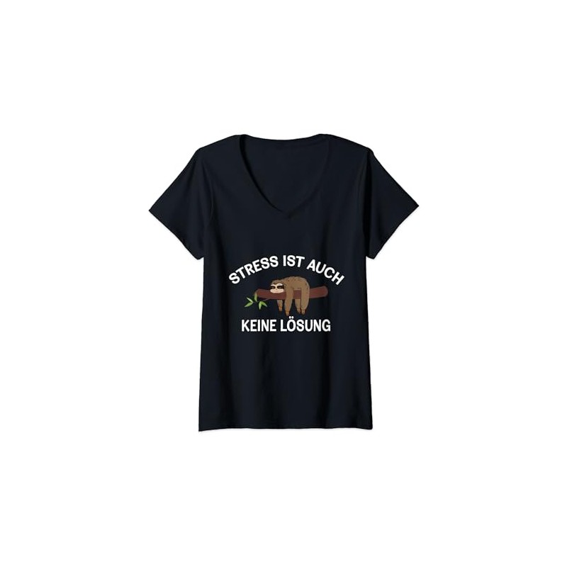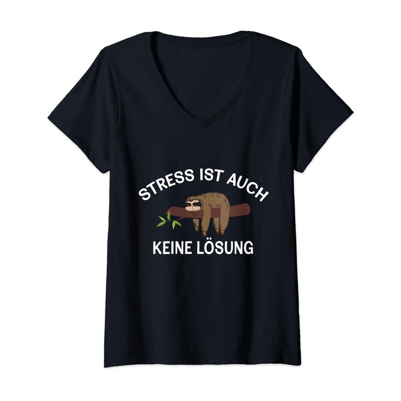 Stress is also no solution funny sleeping sloth V-Neck T-Shirt
