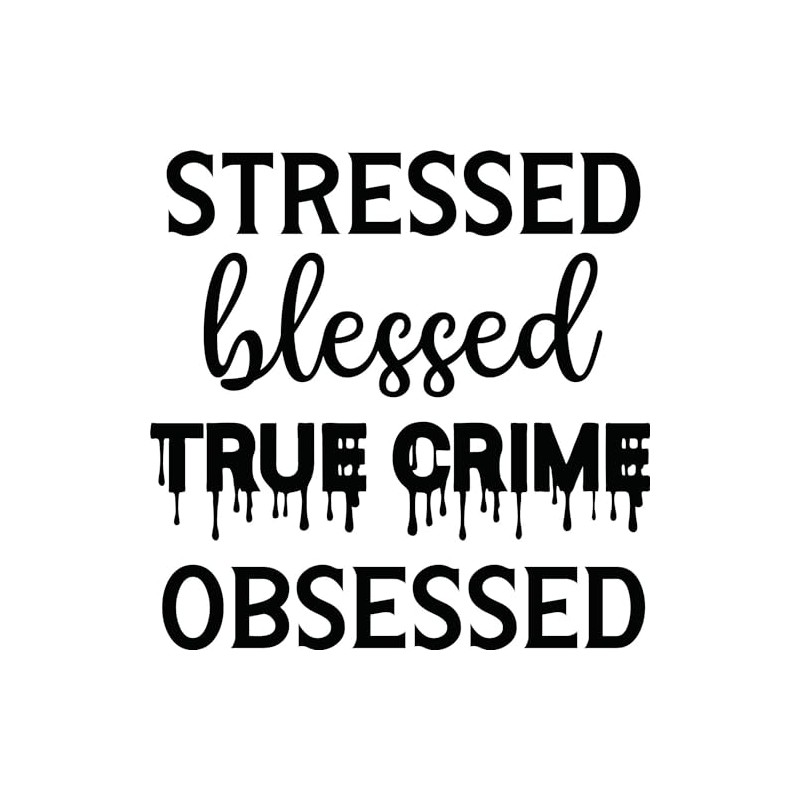 Stressed Blessed True Crime Obsessed Vinyl Decal Sticker for Car/Window/Wall (Gold)