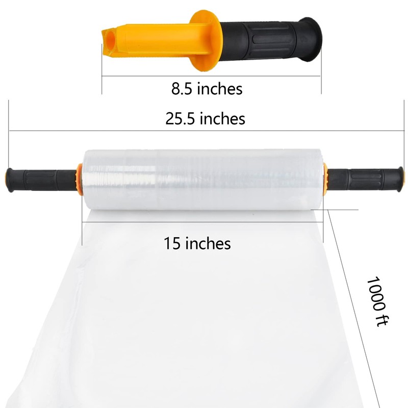 - Convenient Pack: Our set comes with a stretch film rolls with two attachable handles, film measuring 15-inch by 1000ft, which is enough to pack and wrap large packing boxes for moving, pallets, as well as small packages and objects.
