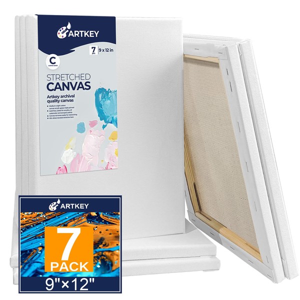Stretched Canvases for Painting 9x12 Inch 7-Pack, 10 oz Triple Primed Acid-Free 100% Cotton Blank Canvas, Rectangular Canvas for Oil Paint Acrylics Pouring & Wet Art Media