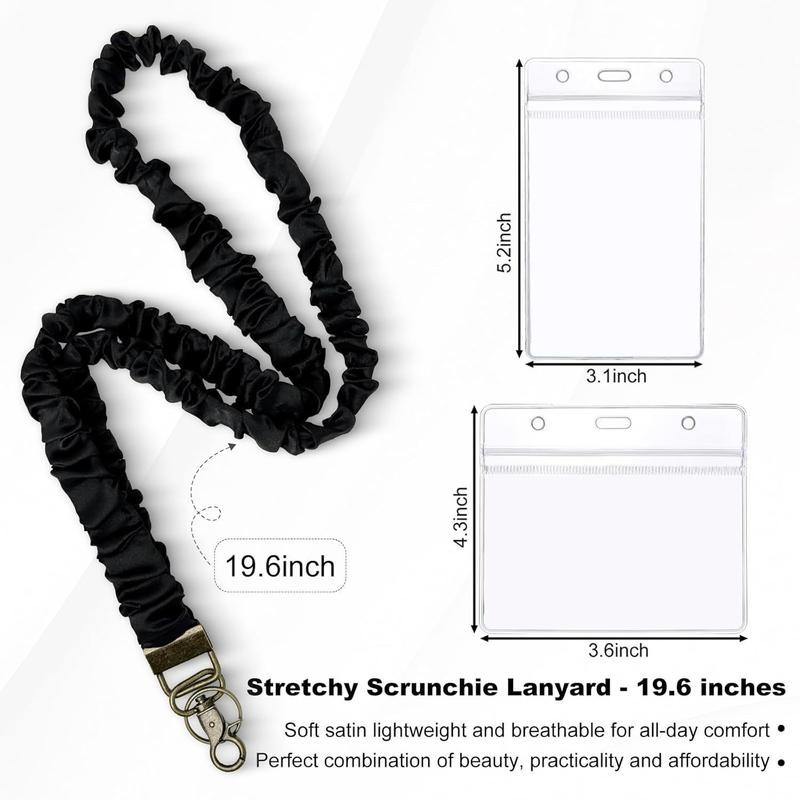 Stretchy Scrunchie Lanyard for ID Badges & Keys - Durable Lightweight Rotatable Metal Base & Sturdy Spring Clasp - Adjustable for Comfort - Perfect for Work Travel & Gym - Hypoallergenic Fabric:_Black/White